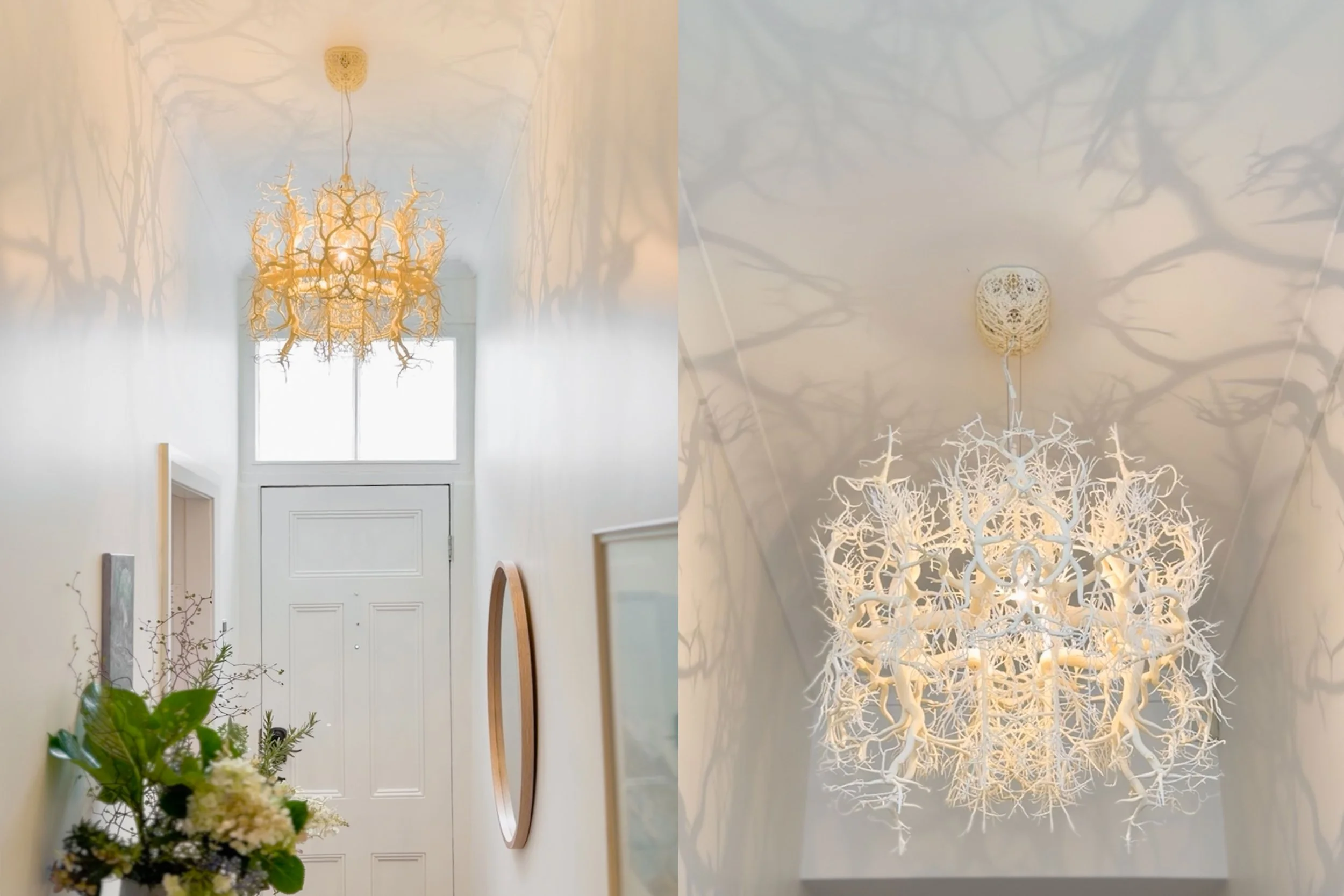 The inspiration for the colour story at 99 Pirie Street all started with the beautiful Forms In Nature light fitting that our client had installed in the entryway. This light fitting casts gorgeous shadows throughout the hallway and brings an overall feeling of nature becoming one with the home.