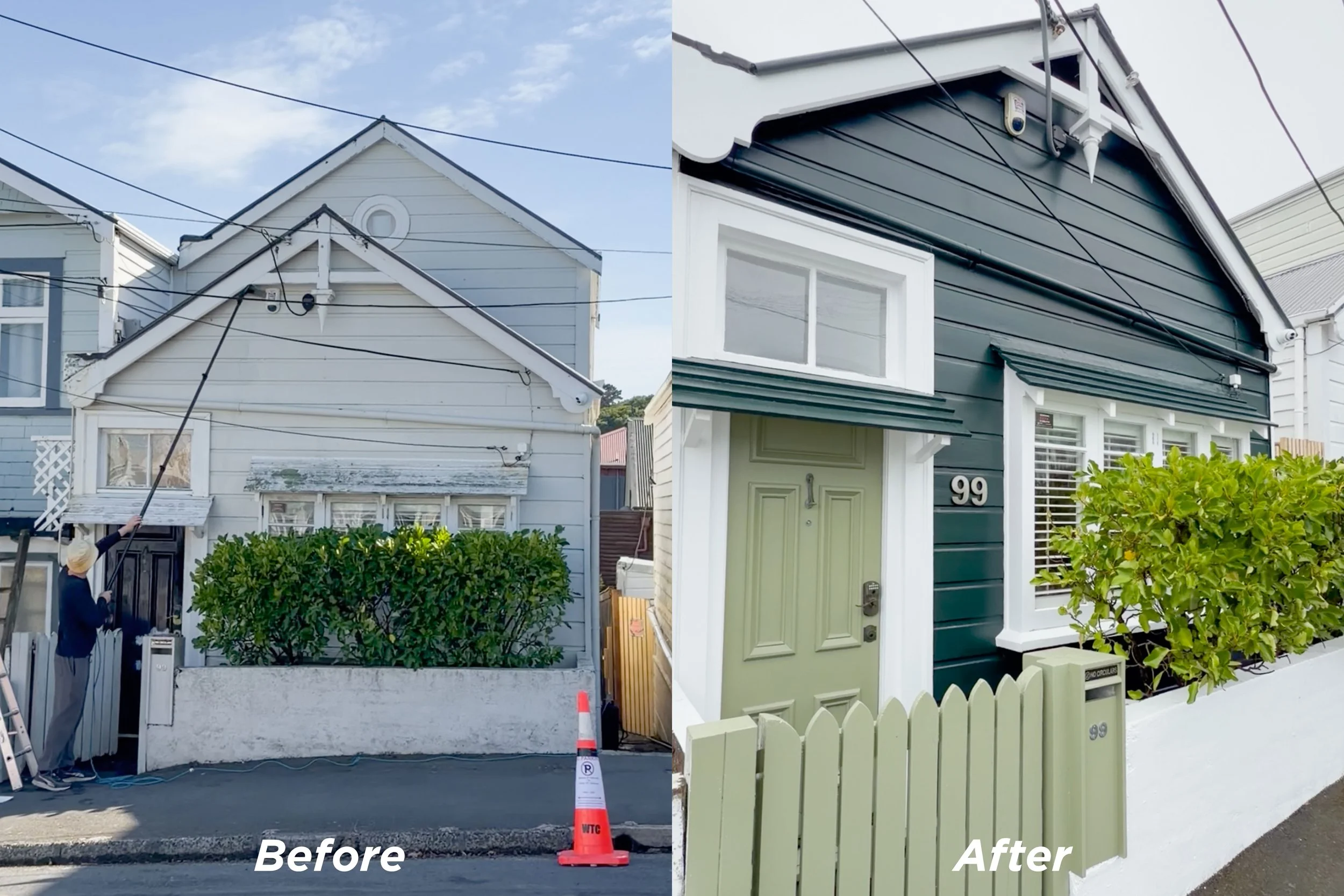 So, I sat down with a pile of Resene paint swatches and began creating a palette that would best suit this Mt Victoria cottage. If you’ve been considering a re-paint of your own home, you’re daunted by the task of getting your property Open Home Ready or you simply love a good before and after, here is the full run-down of this behind the scenes process…