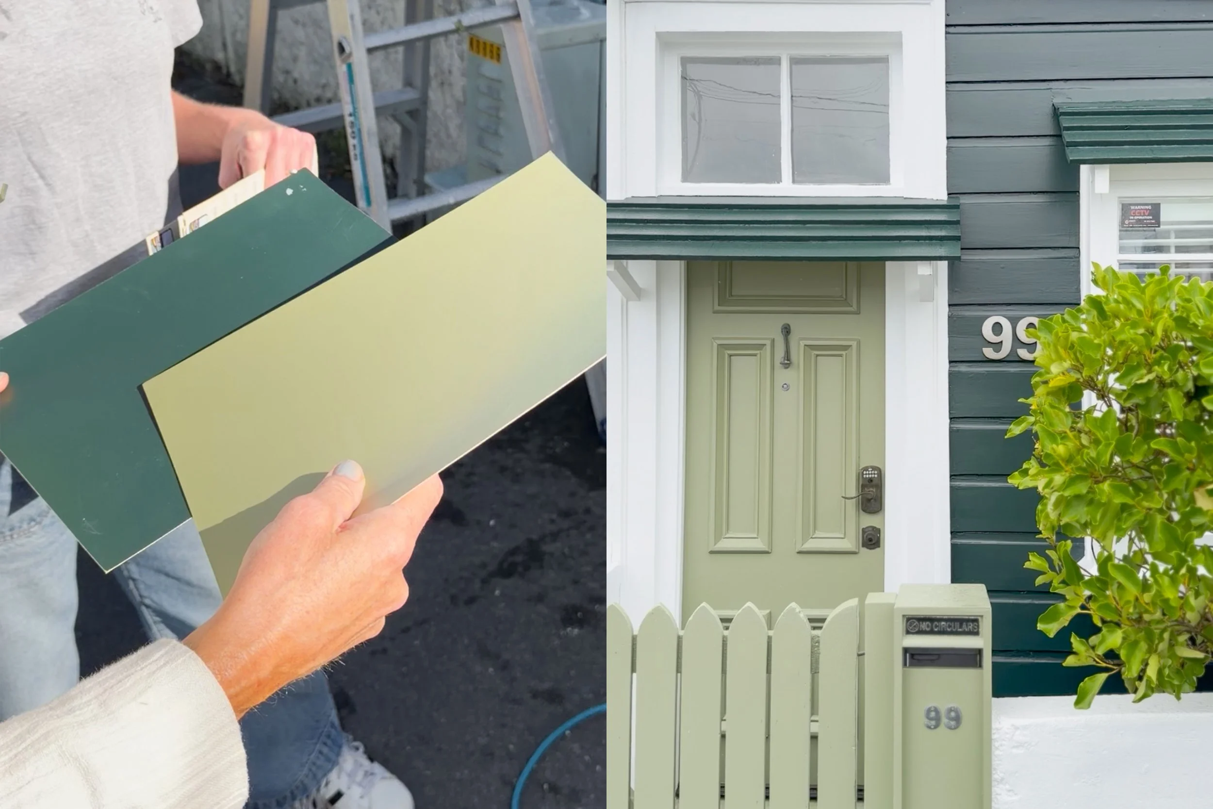 For the exterior frontage we used Resene Midnight Moss, a deep shade of mossy green which makes 99 Pirie Street pop and ties into the greenery of the town belt at the top of the hill. For the gate, mailbox and front door, we chose Resene Finch, a lighter shade of green, which complemented the darker facade perfectly. After a powerwash and some coats of paint, the exterior transformed from a cute cottage to a home that truly stands out from the rest.
