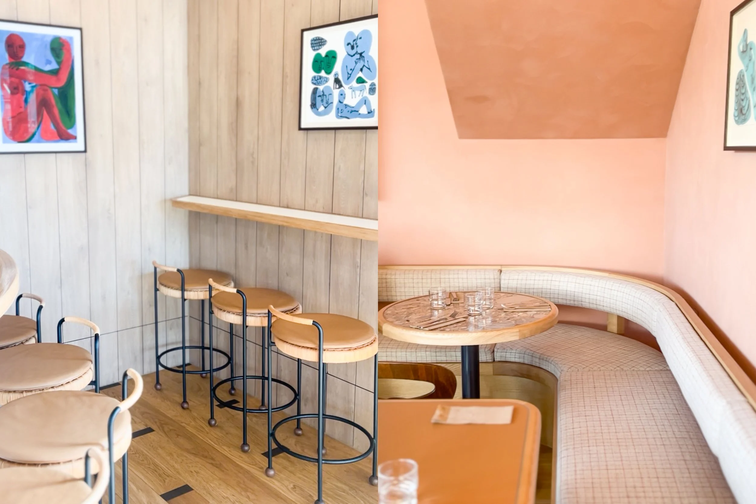 The colour palette, furniture choices and unique artwork give this restaurant a truly one of a kind feel and we found ourselves admiring every single element of the space, every detail has been considered and it definitely pays off. We especially loved the gorgeous stools lining the bar…