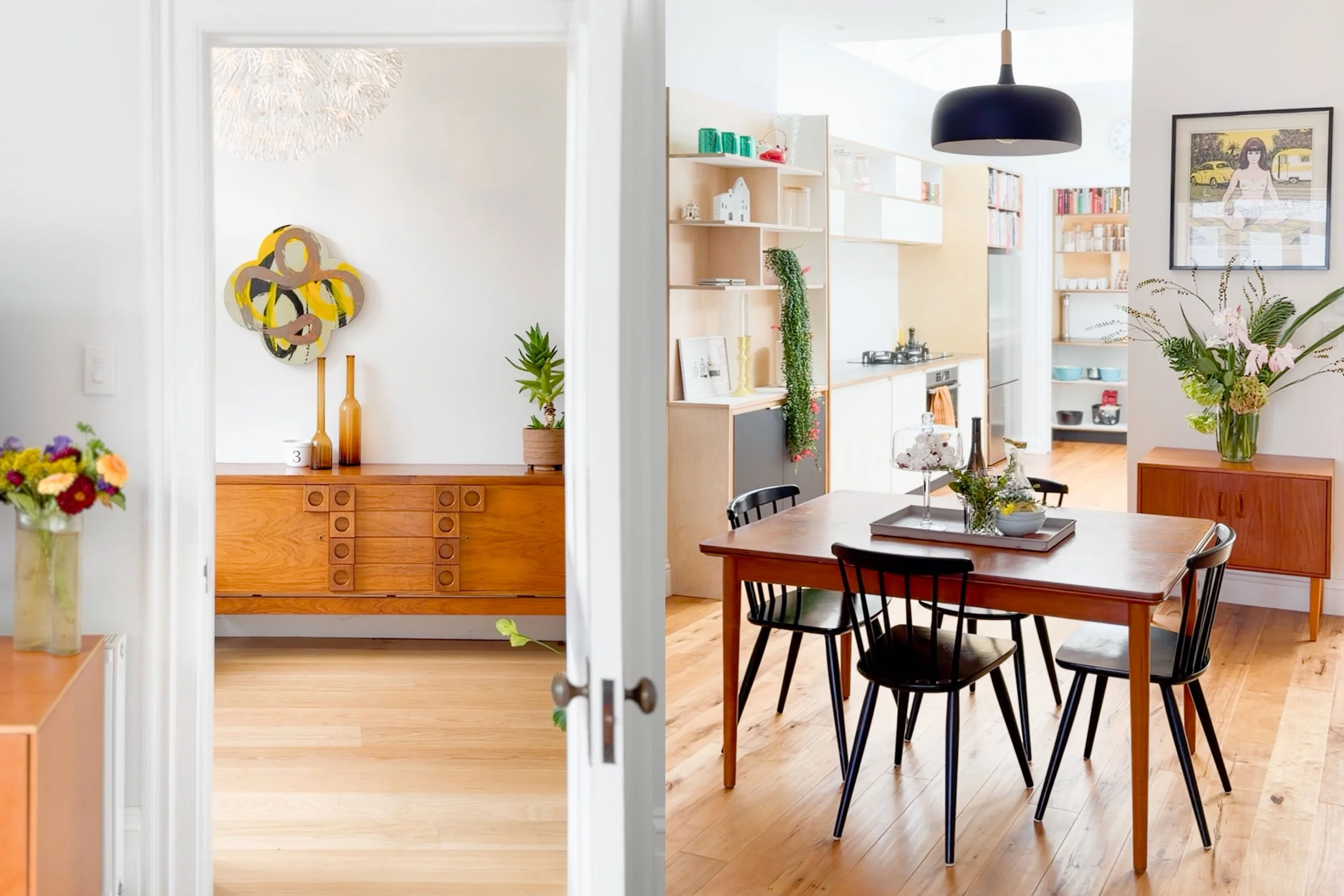 Something I love about the use of furniture and decor in both 18 Austin Street and 16 Hawker Street is the eclectic yet considered vibe. Combining contemporary, mid-century and vintage/antique pieces is the perfect way to bring unique charm and warmth to a character home. Where you might find a modern sofa, next to it is a gorgeous mid-century timber sideboard and plenty of soft furnishings like cushions, throw blankets and rugs to tie it all together.