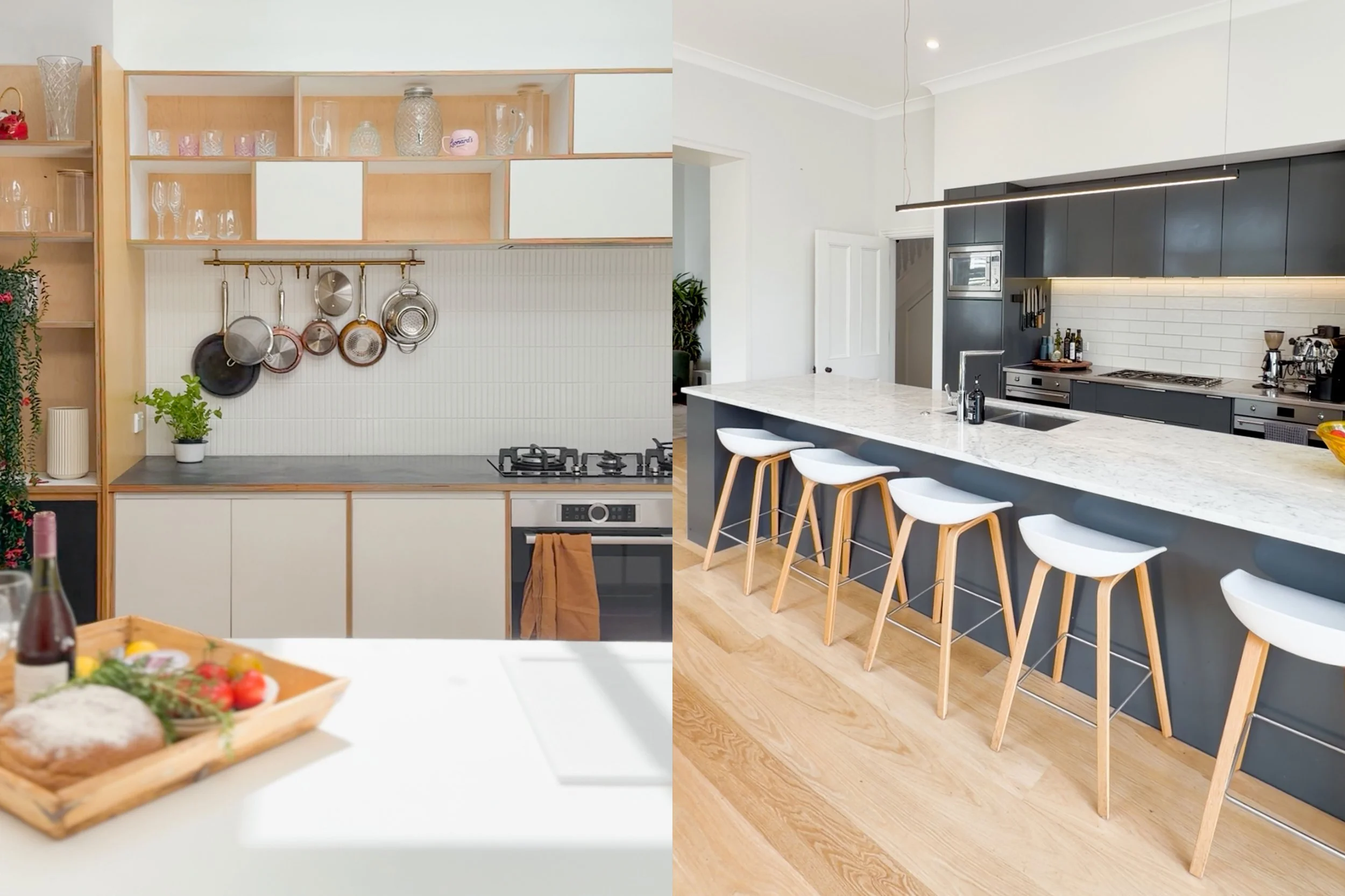 The use of materials in both 18 Austin Street and 16 Hawker Street are unique but absolutely perfect. Both properties have modern kitchens that fit seamlessly into their character surroundings with the use of simple but luxe materials. 16 Hawker Street uses an understated ply material in their kitchen, which ties beautifully into the hardwood floors and allows the space to feel both bright and expansive as well as textured and inviting.